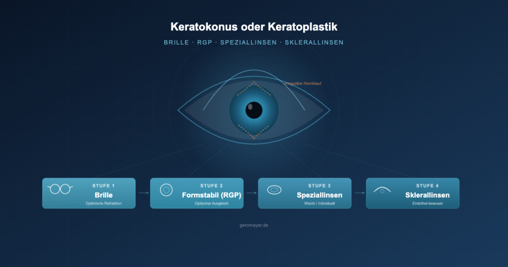 Als Augenoptikermeister betreue ich Menschen, die mit Keratokonus leben oder eine Hornhauttransplantation (Keratoplastik) erhalten haben. Die Versorgung dieser Patienten ist anspruchsvoll und verlangt neben hoher Fachkompetenz vor allem eines: Verantwortung.[…]